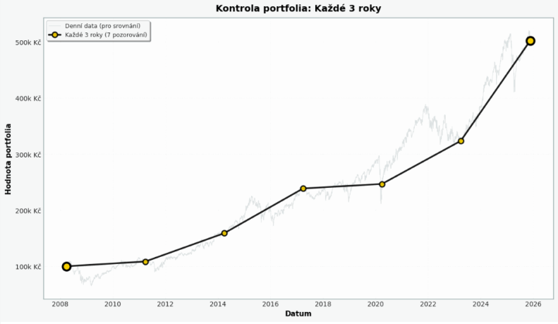 Chtěli byste výnosy, které vypadají jako na kalkulačce? To není problém. Stačí k tomu jediná věc – kontrolovat své portfolio jen jednou za pár let.